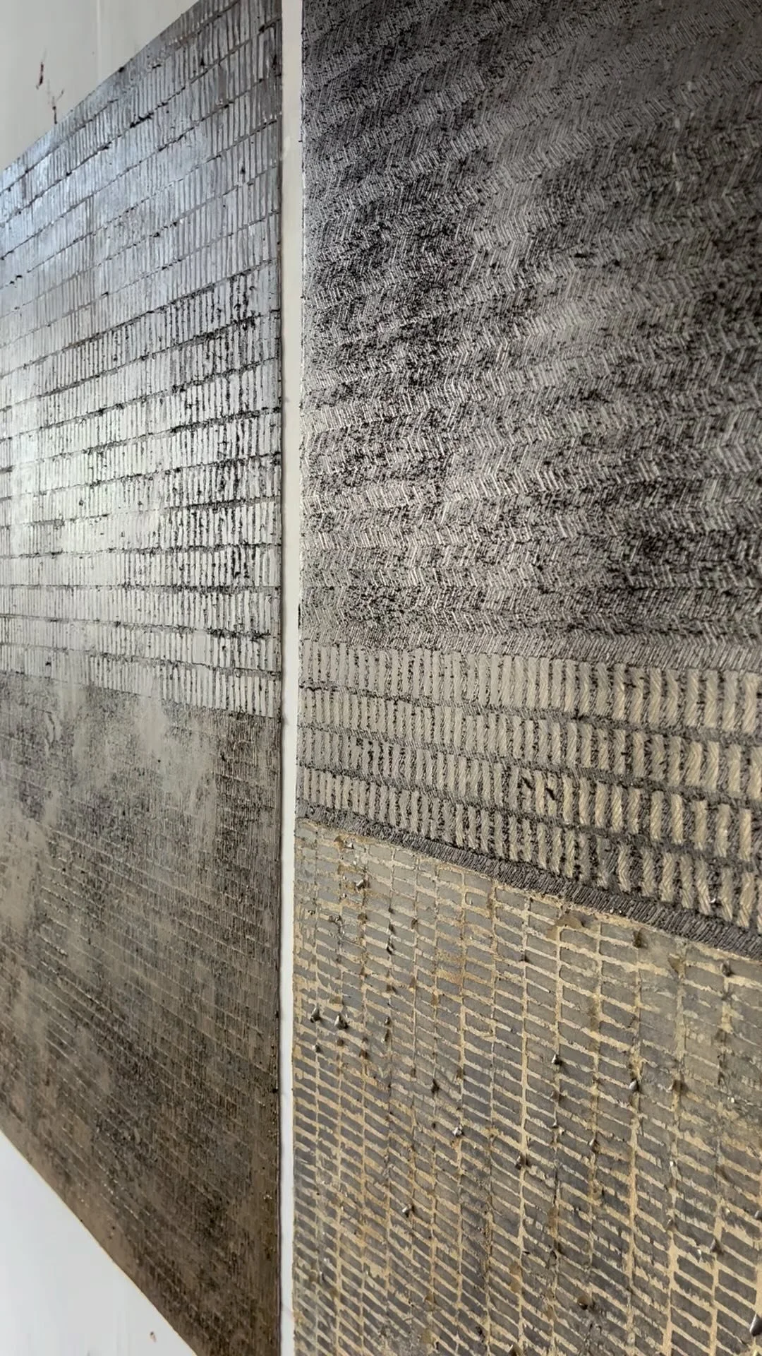 In the studio I dissect and filter, synthesising together associations from the environment โ sensory, spatial and structural. Mark-making is at the heart of my practice. The processes are both physical and purposeful, with laboured repetitive marks requiring stamina and persistence and in contrast an unpredictability, with spontaneity.